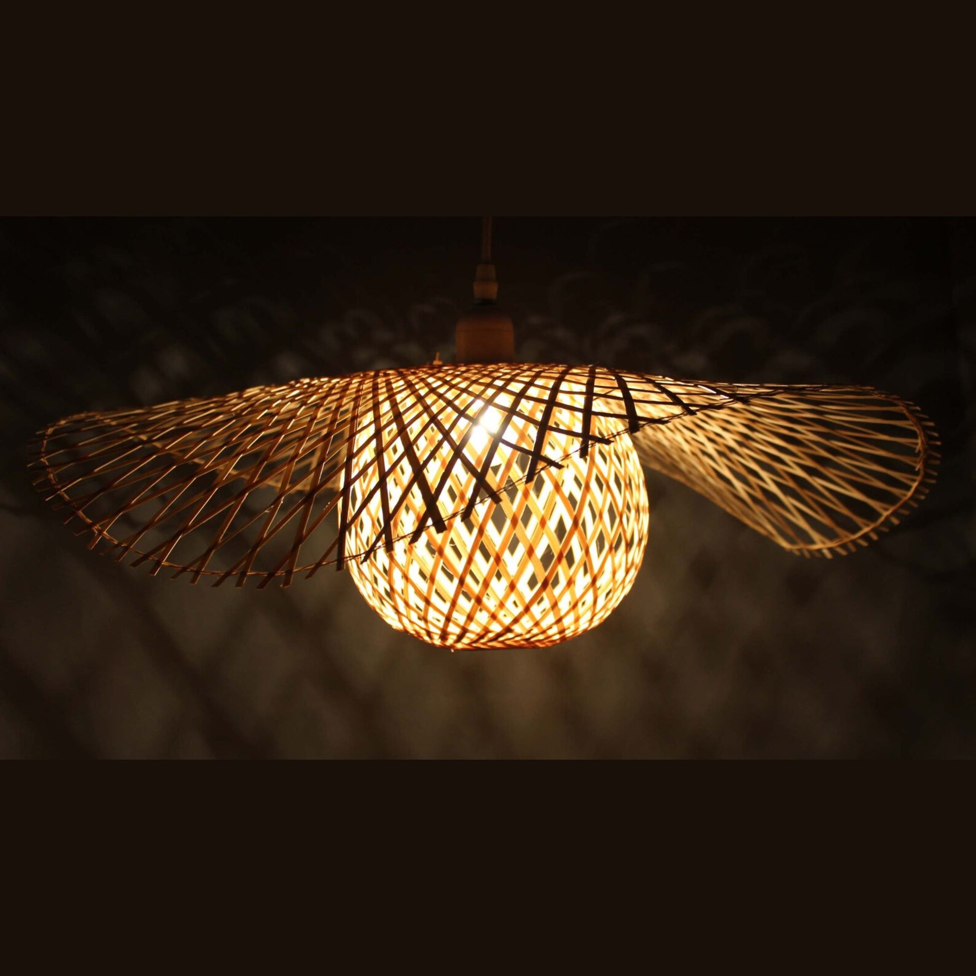 Pendelleuchte Rattan aus Bambus – Handgeflochtene Natur Hängeleuchte | RattanHaus™