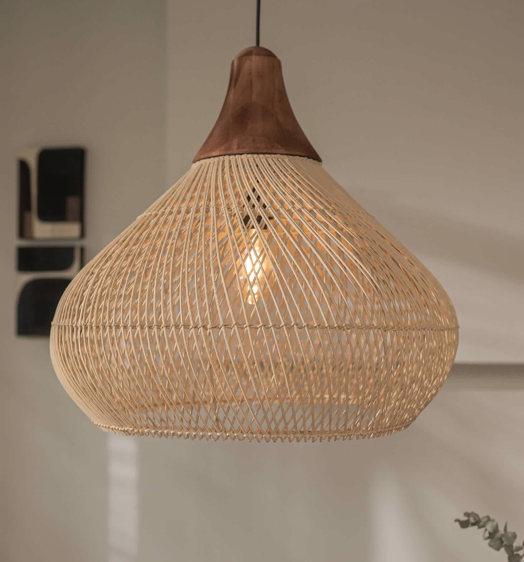 Beige Rattan Pendelleuchte – Wabi-Sabi Boho Design | RattanHaus™