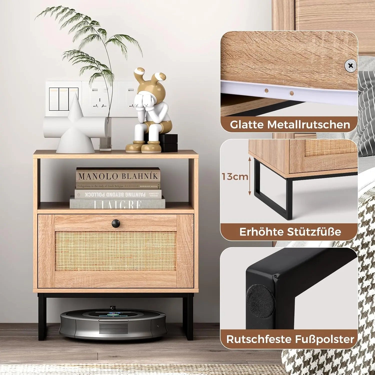 Rattan Nachttisch mit Schublade & offenem Fach | RattanHaus™